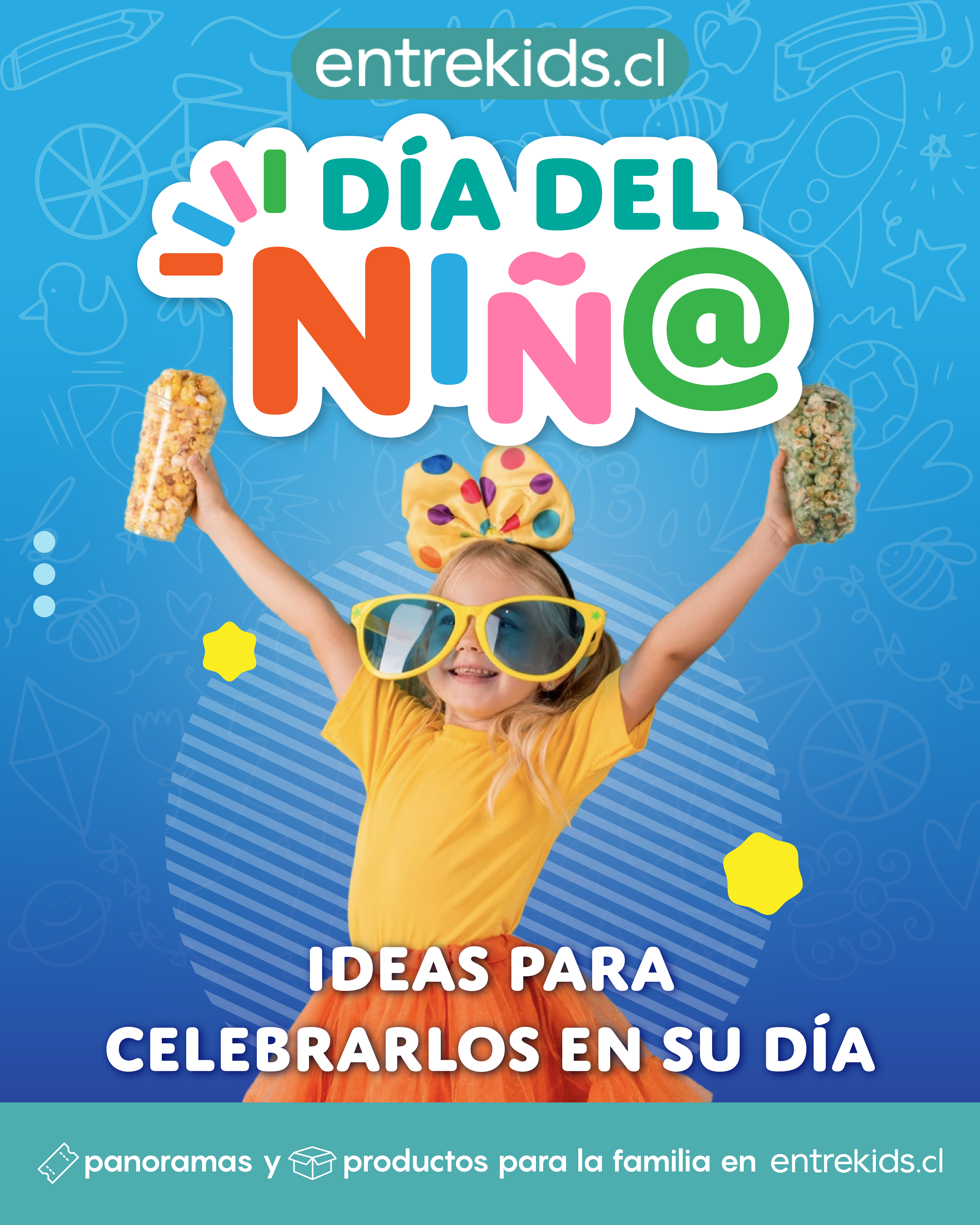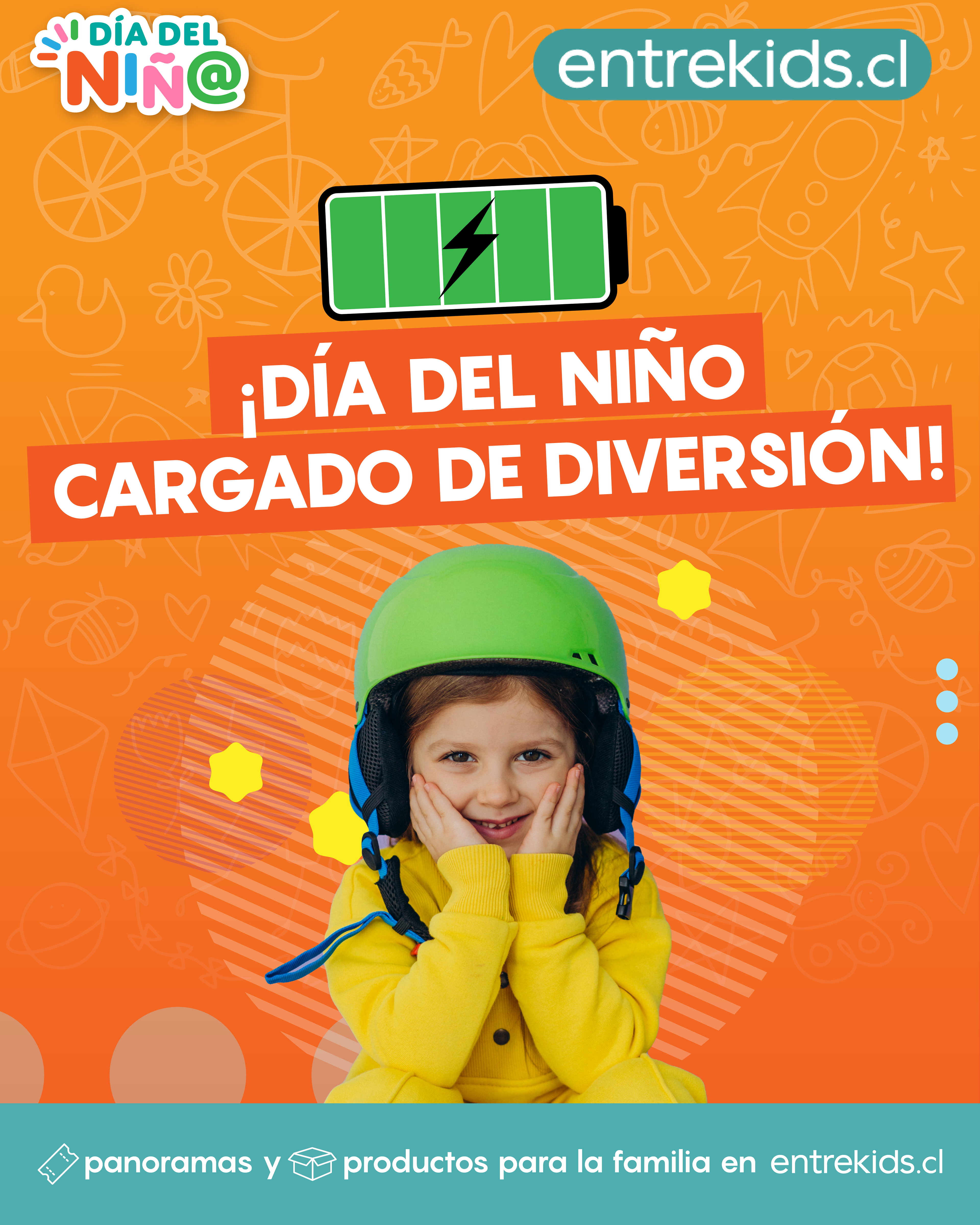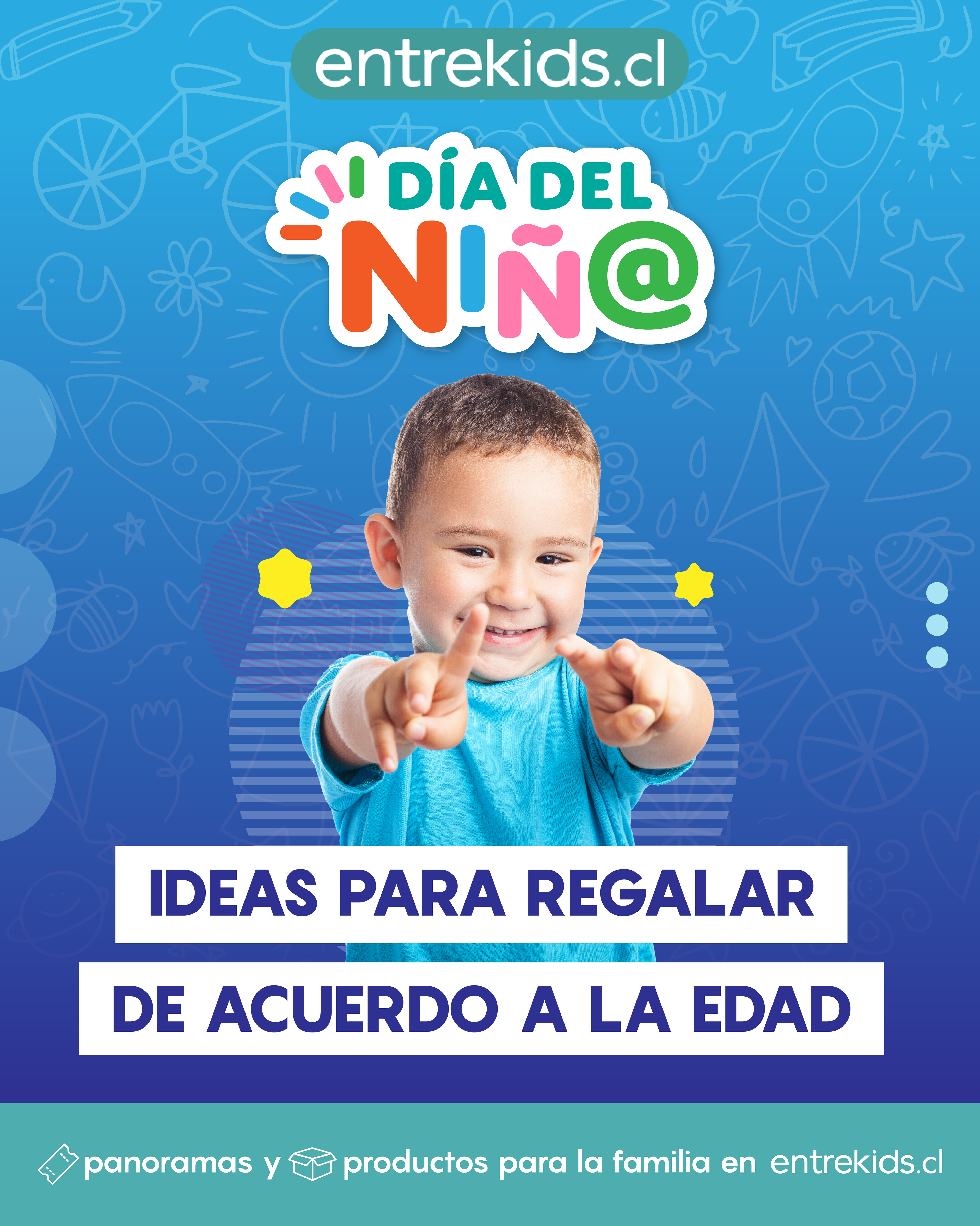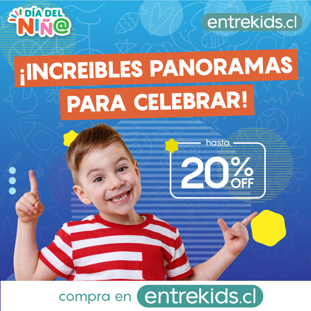 Diseño de campaña de día del niño en conjunto a entrekids.cl, empresa dedicada a la venta de panoramas y productos familiares.