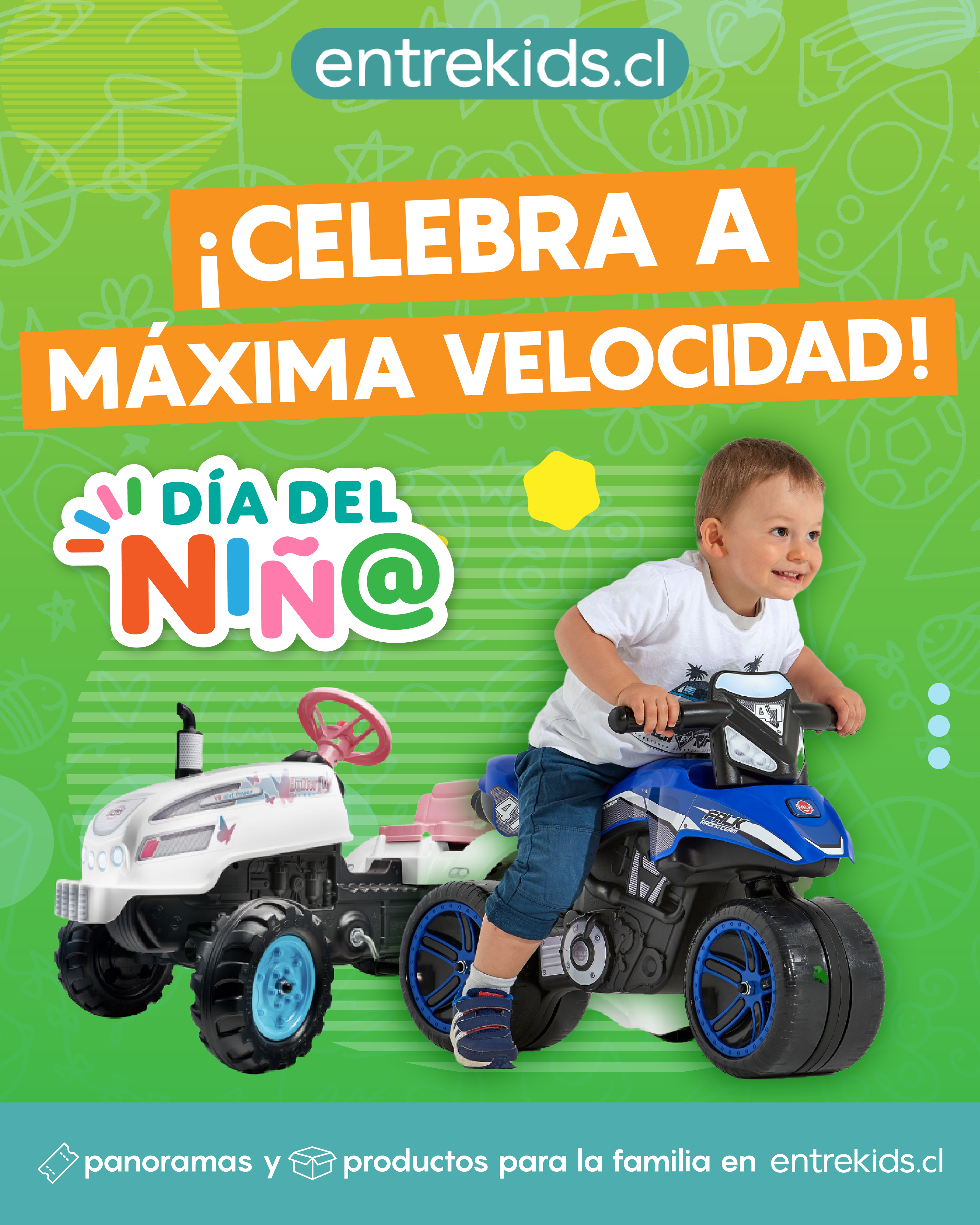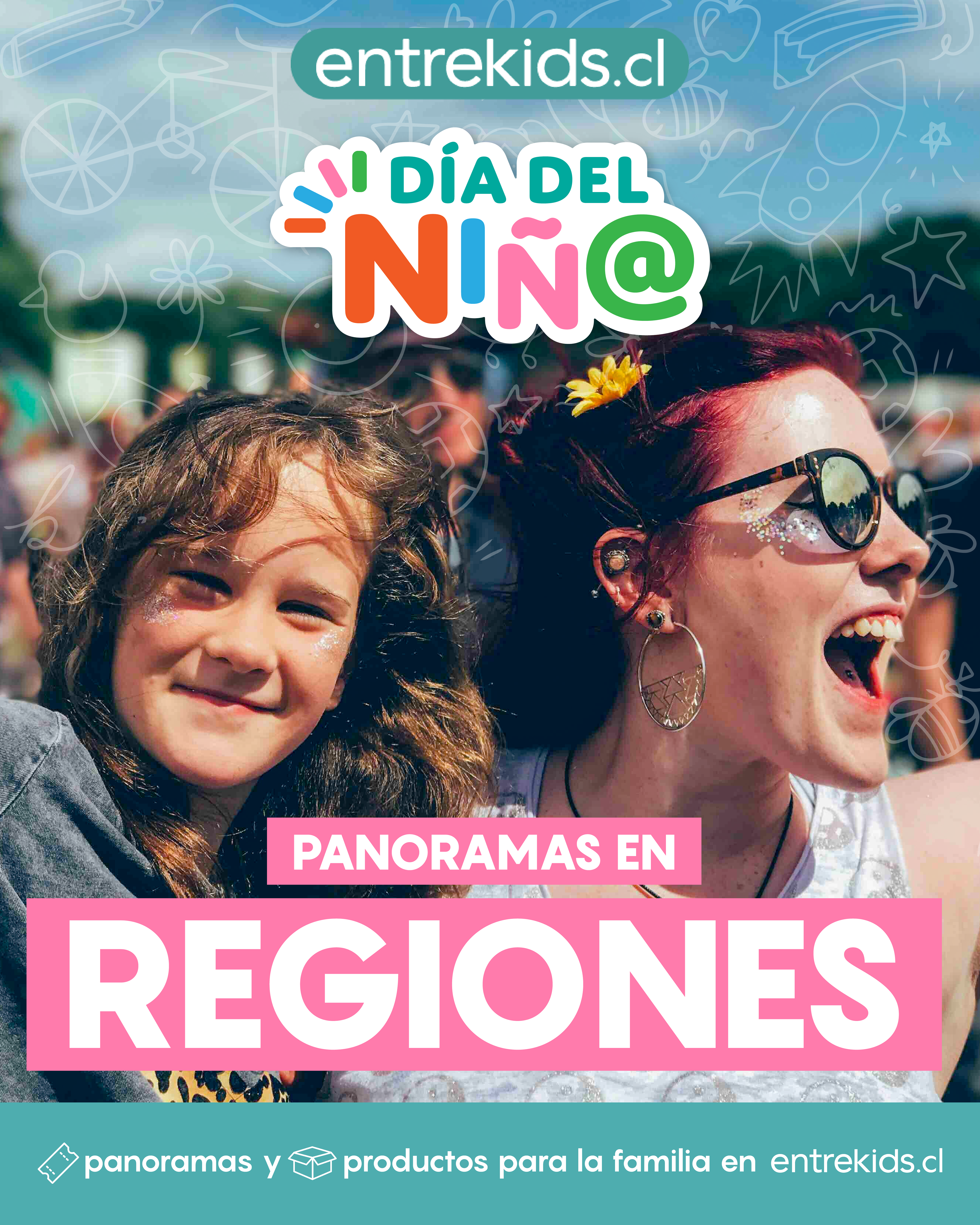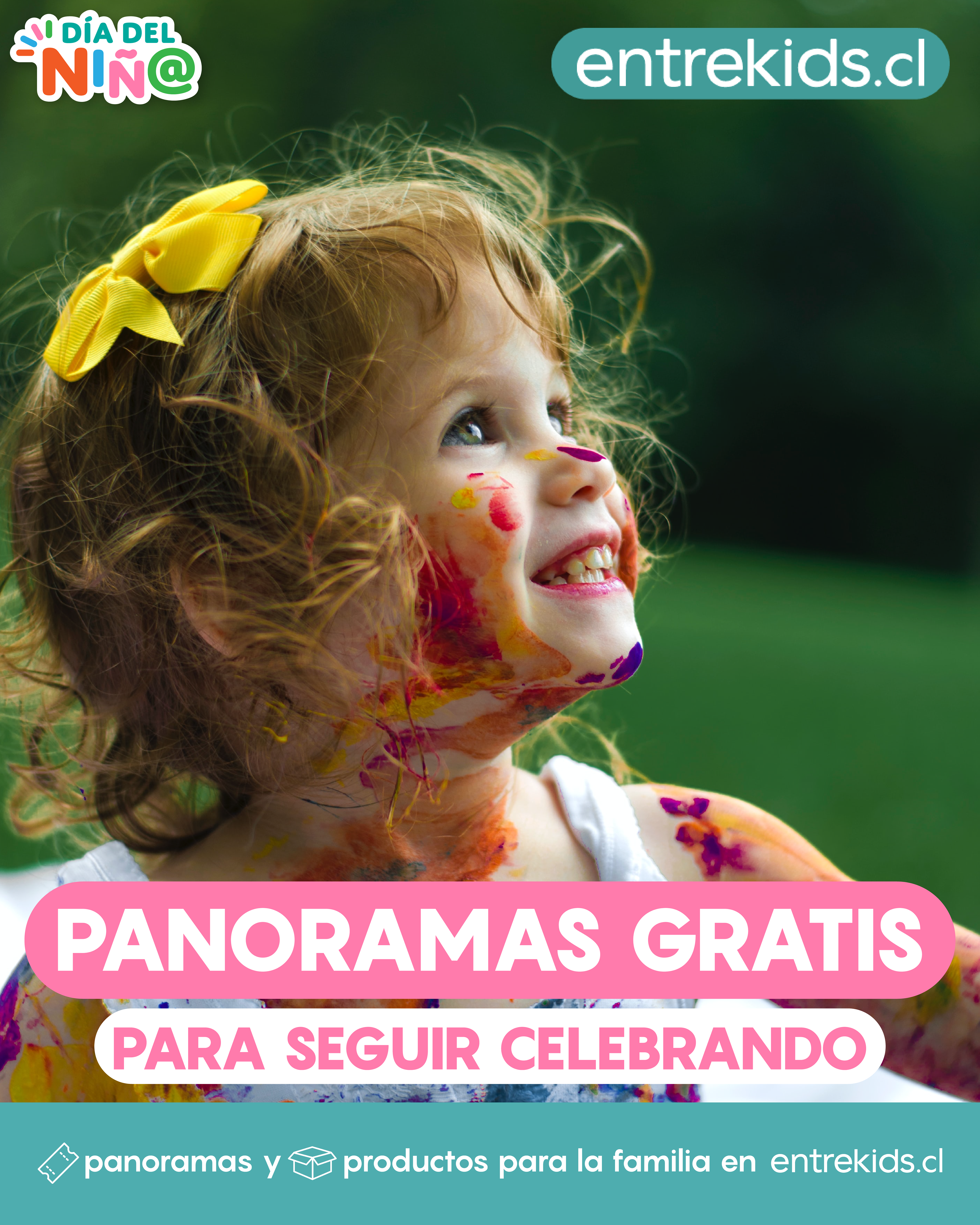 Diseño de campaña de día del niño en conjunto a entrekids.cl, empresa dedicada a la venta de panoramas y productos familiares.