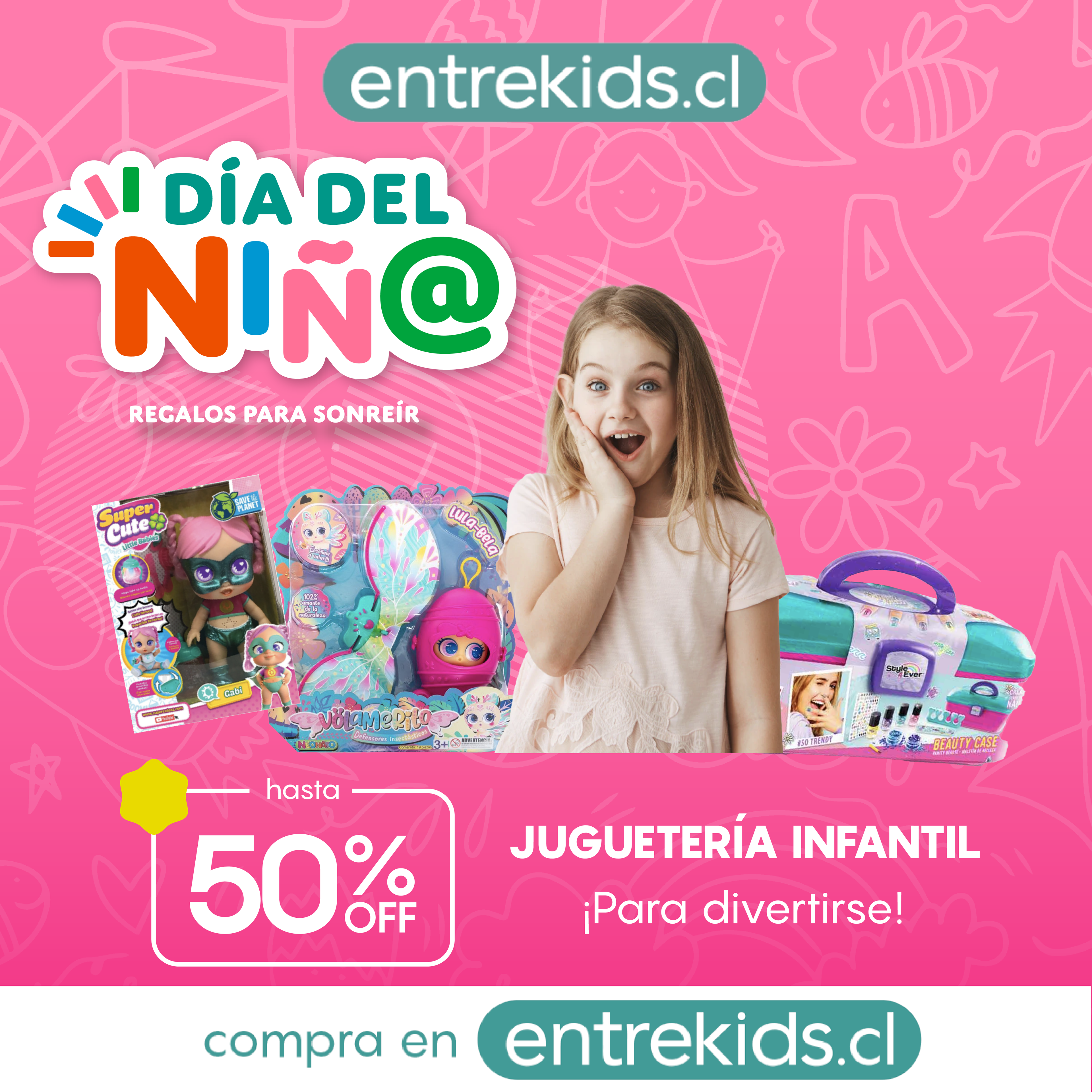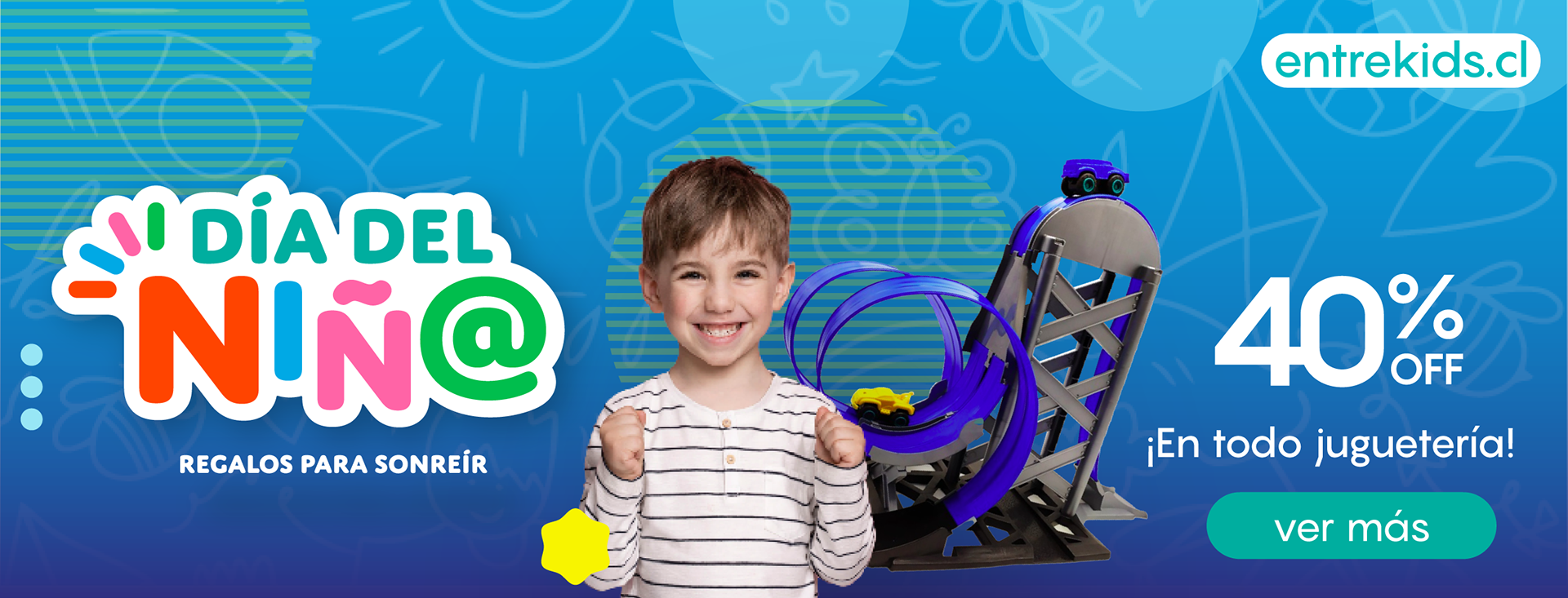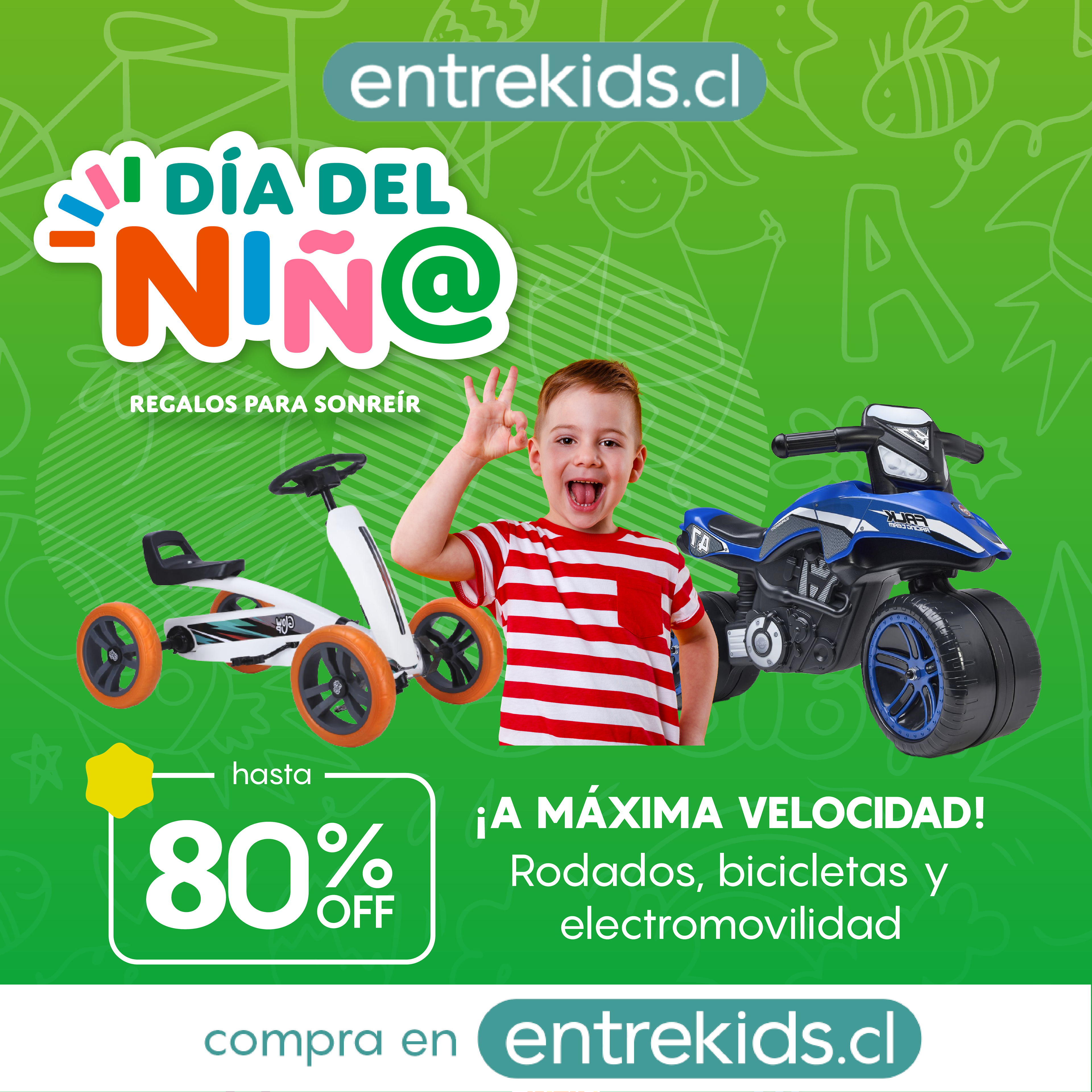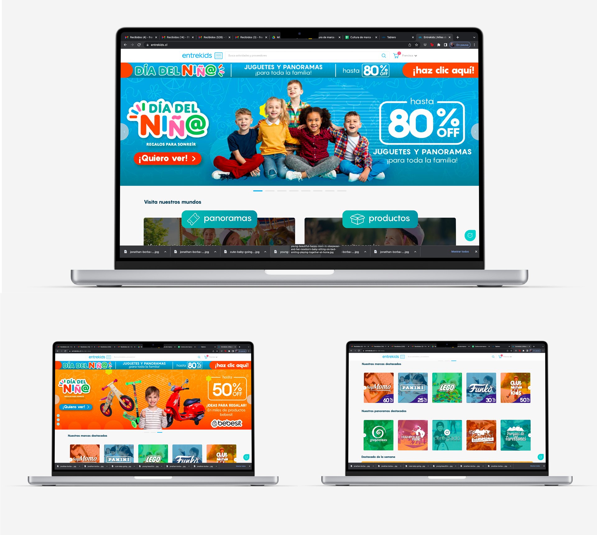 Diseño de campaña de día del niño en conjunto a entrekids.cl, empresa dedicada a la venta de panoramas y productos familiares.